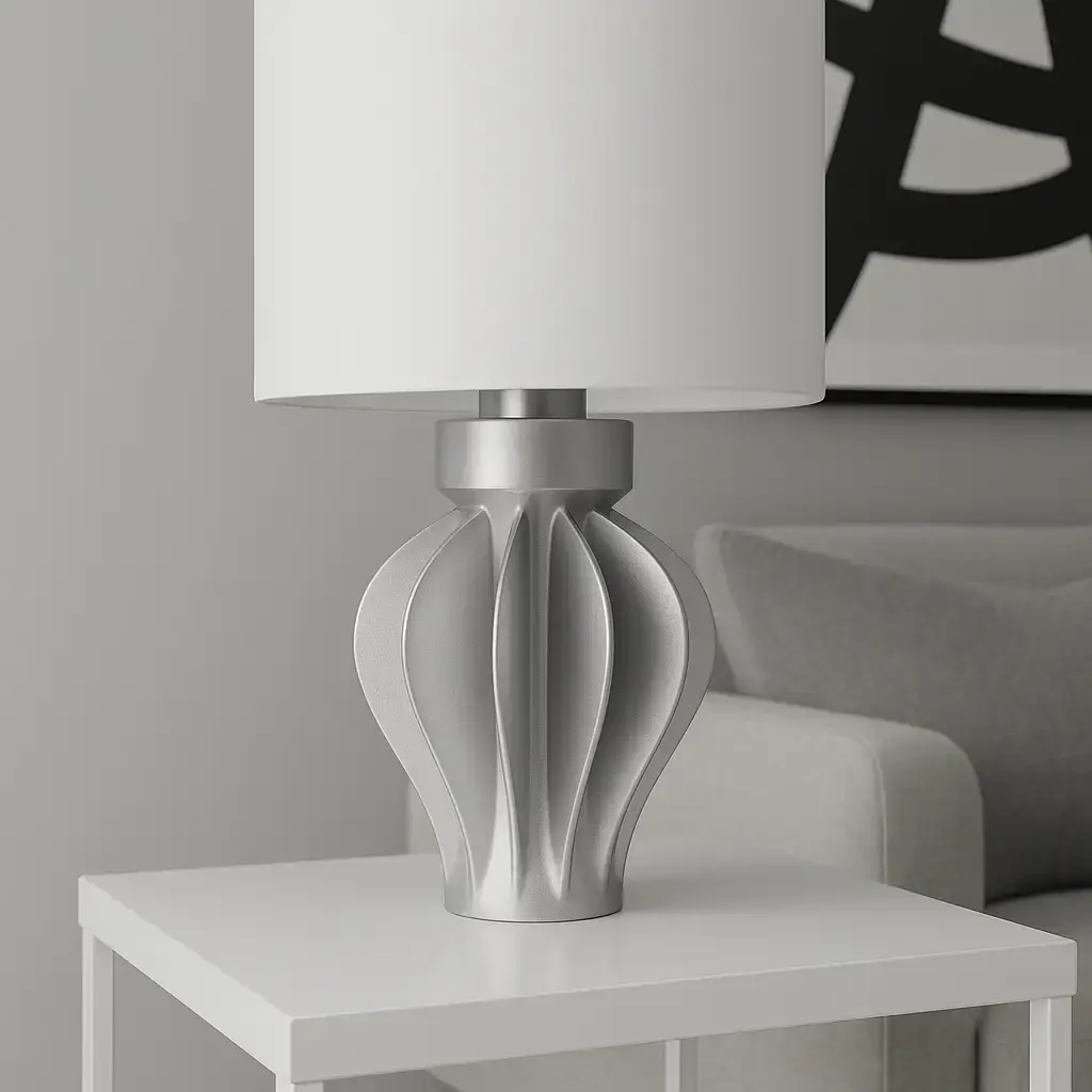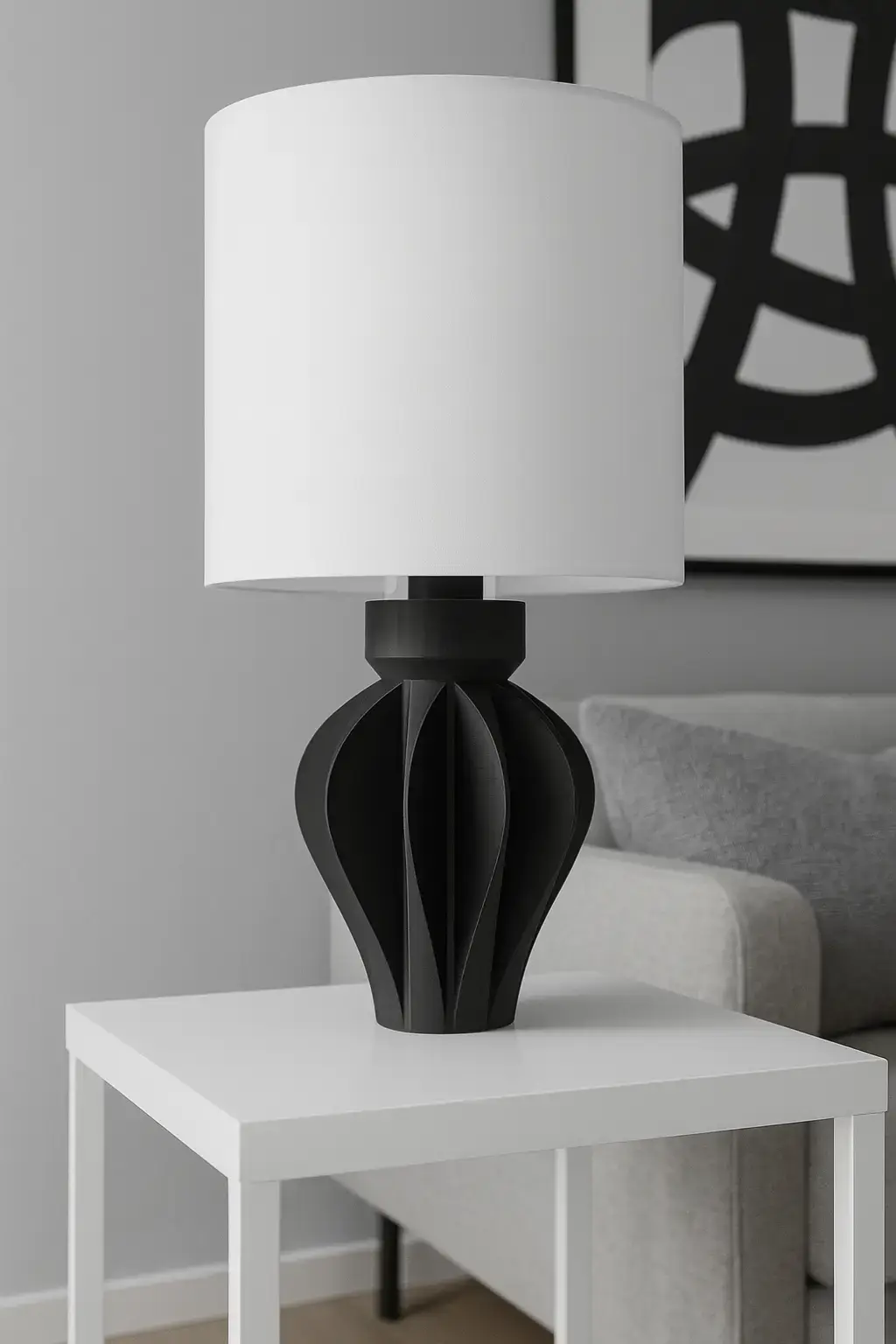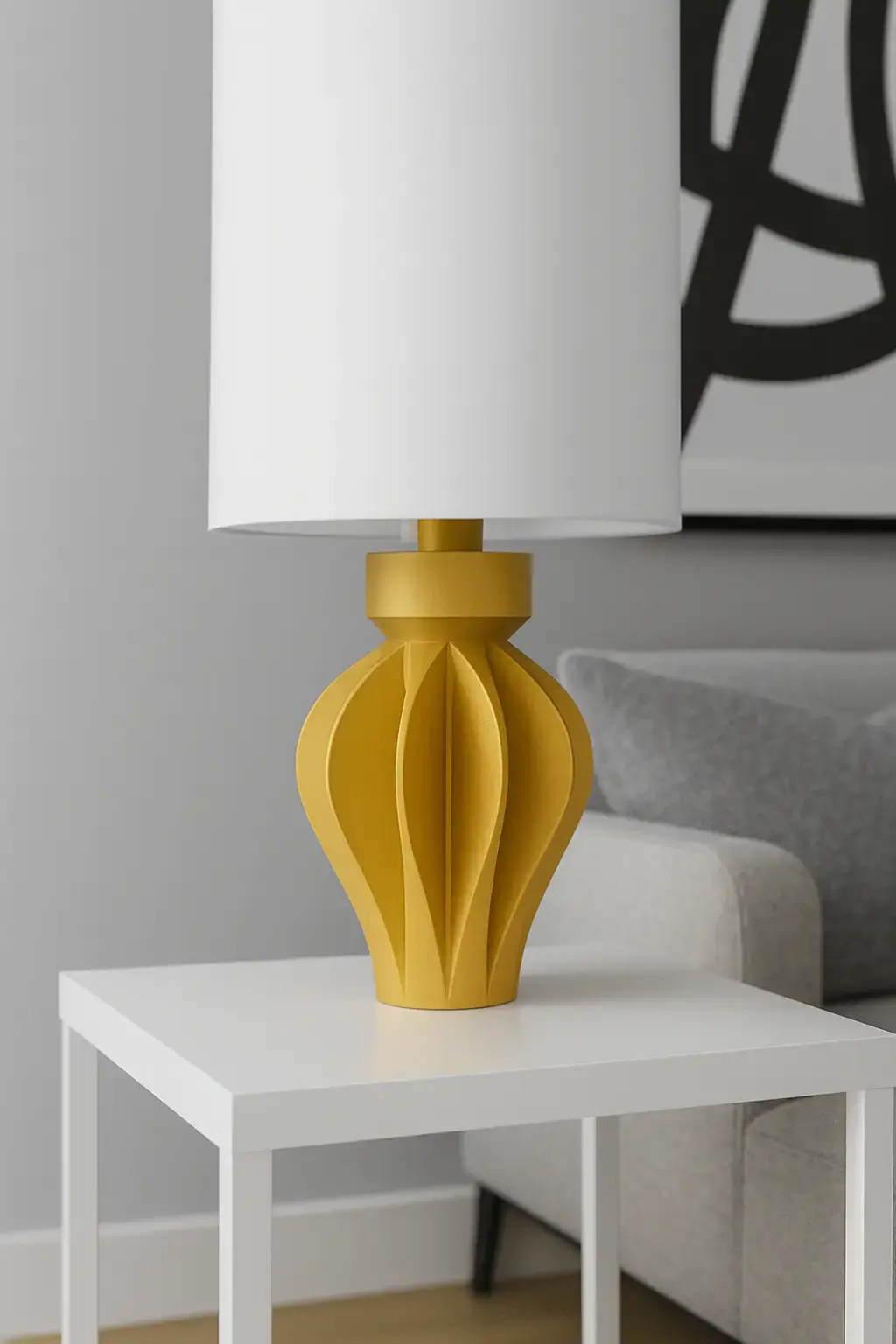La lampe Élytre se distingue par son pied sculptural en forme de corolle stylisée.
