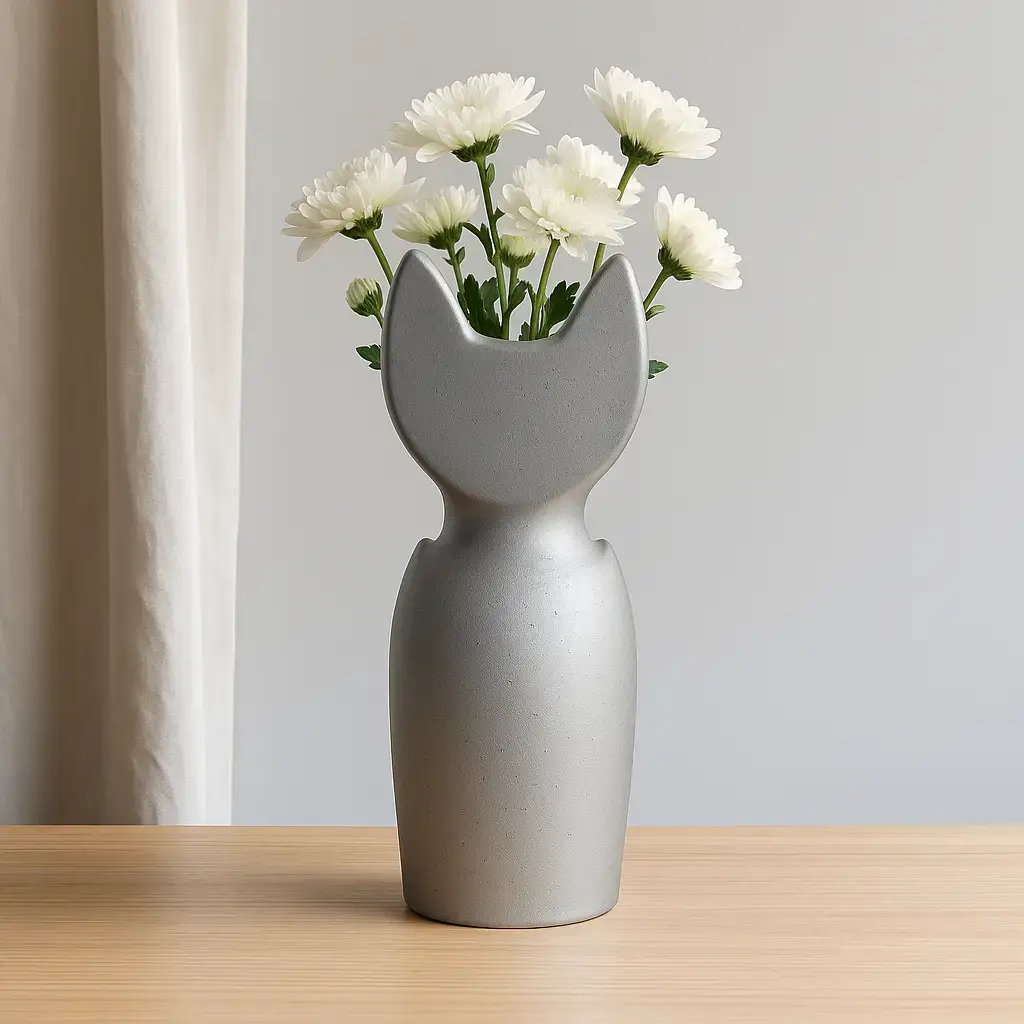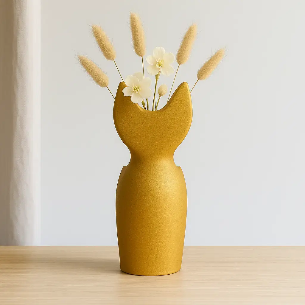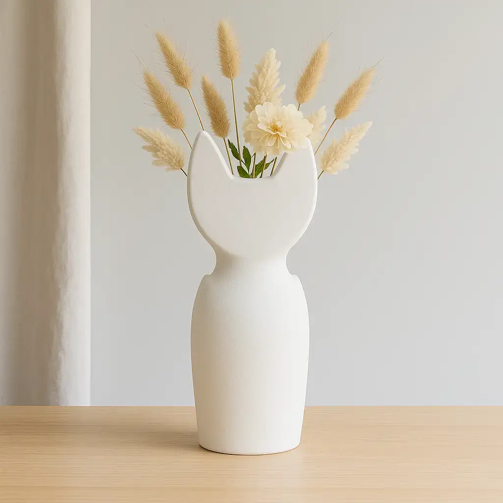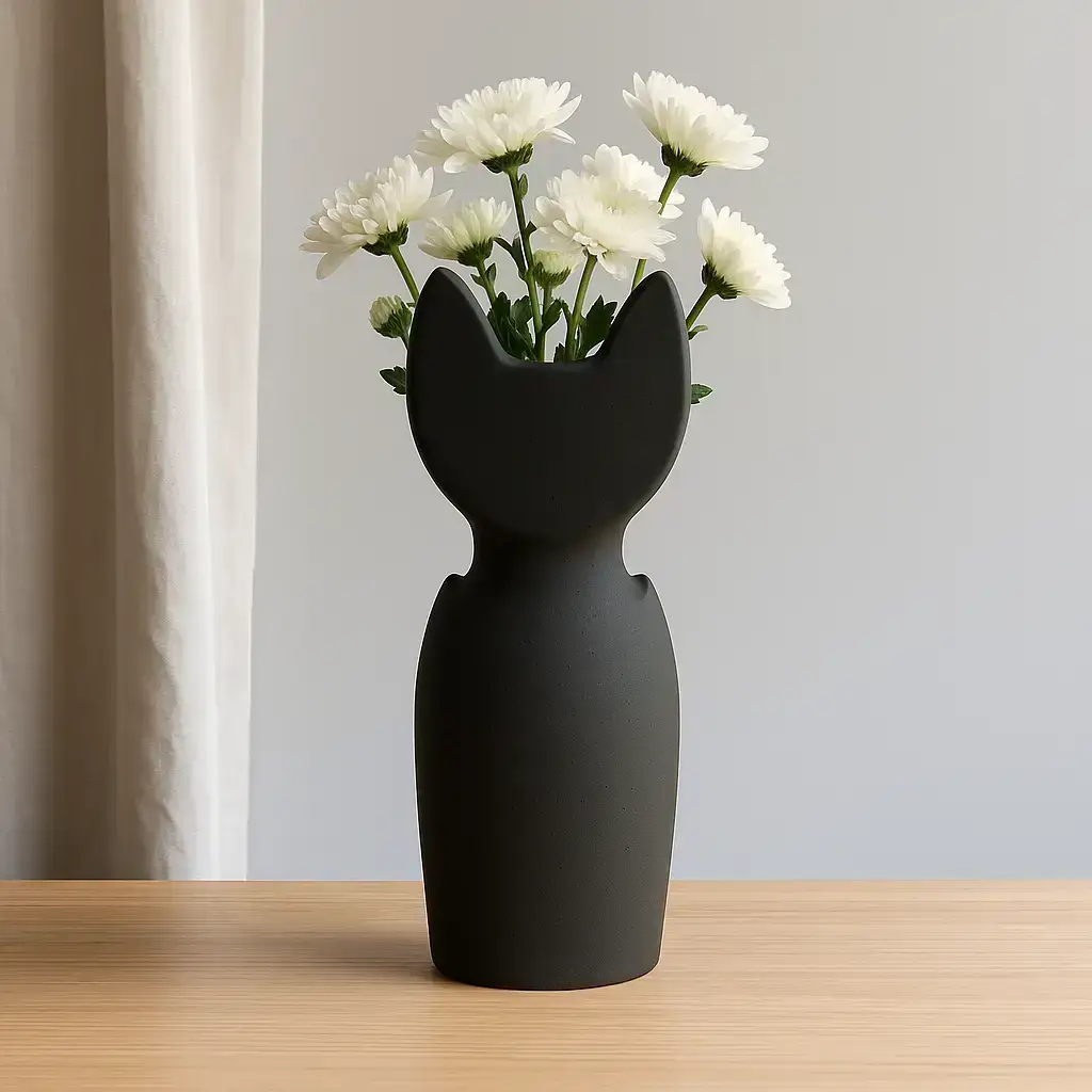 Le vase Neko marie minimalisme et poésie. Inspiré de la silhouette d’un chat stylisé, il se distingue par ses lignes épurées et son design contemporain.